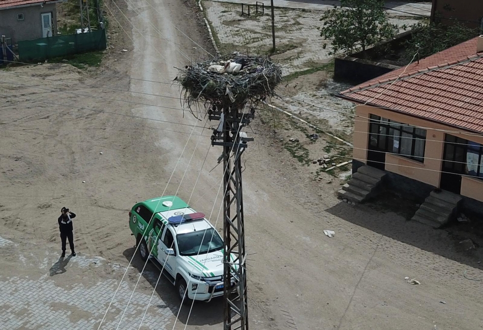Kırıkkale İl Jandarma Komutanlığı Çevre, Doğa ve Hayvanları Koruma Timi, Sulakyurt ilçesine bağlı Yeşilli köyüne gelerek yavrulayan göçmen leylek kuşlarının korunmasına yönelik çalışma yapıyor. Leyleklerin avlanmasını ya da yuvalama alanlarında rahatsız edilmesini önlemek amacıyla yuvaları ve doğal yaşam alanlarını kontrol ediyor.